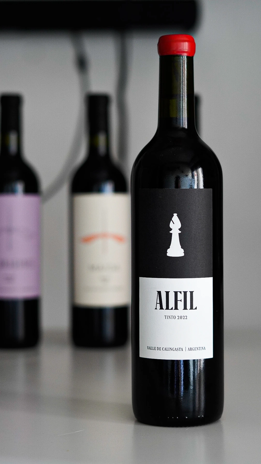 Valle de Calingasta San Juan.Vino tinto elaborado 95% a base de bonarda y 5% a de torrontes mendocino.